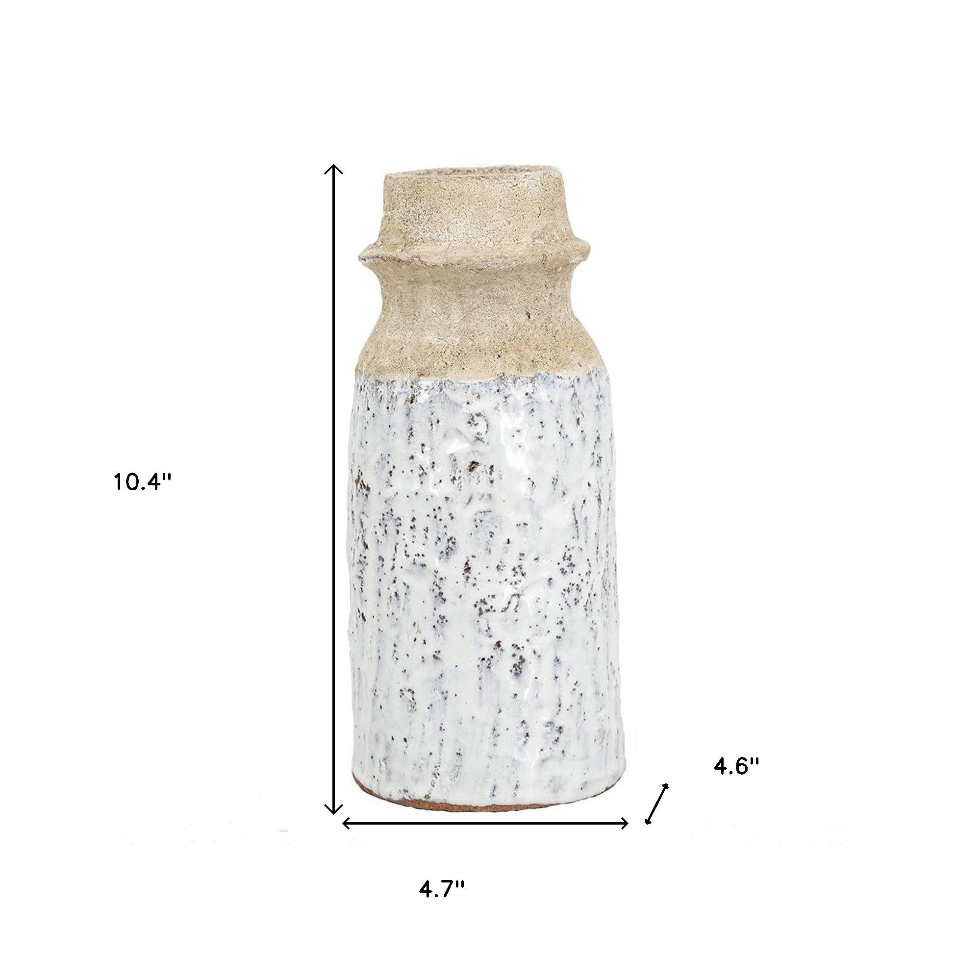 10" Beige And Ivory Cylinder Terracotta Table Vase
