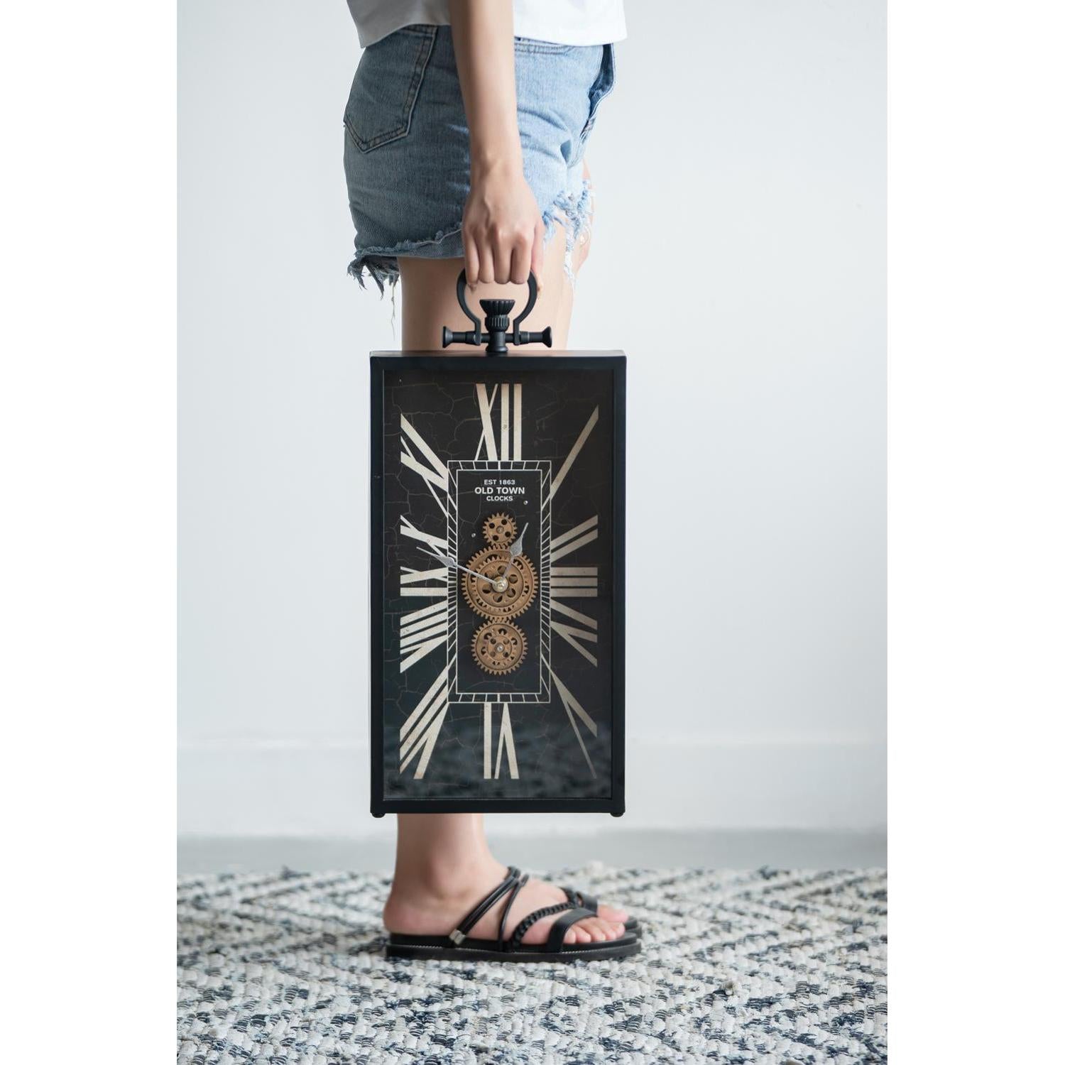 10" Black and Gold Metal and Glass Analog Vintage Style Crackle Wall Clock