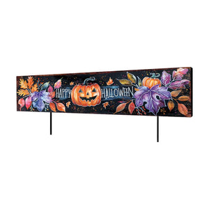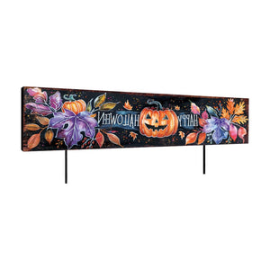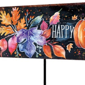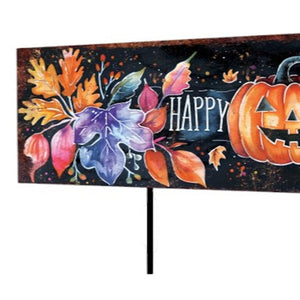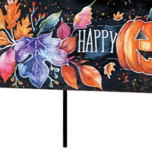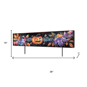 10" Black And Orange Happy Halloween Pumpkin Solid Wood Garden Stake