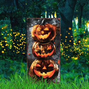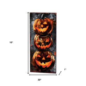 10" Black And Orange Solid Wood Halloween Ghost Garden Stake