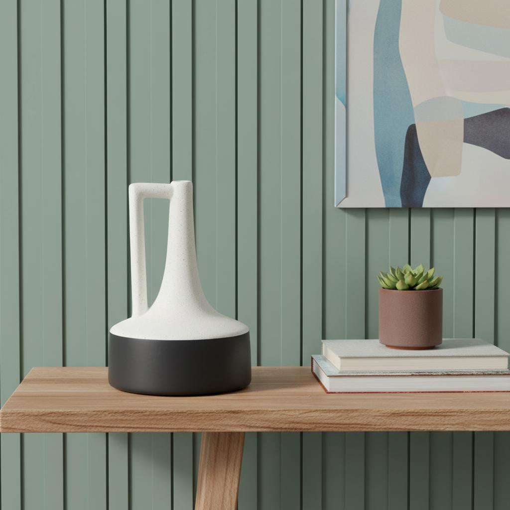 10" Black And White Ombre Ceramic Jug Vase