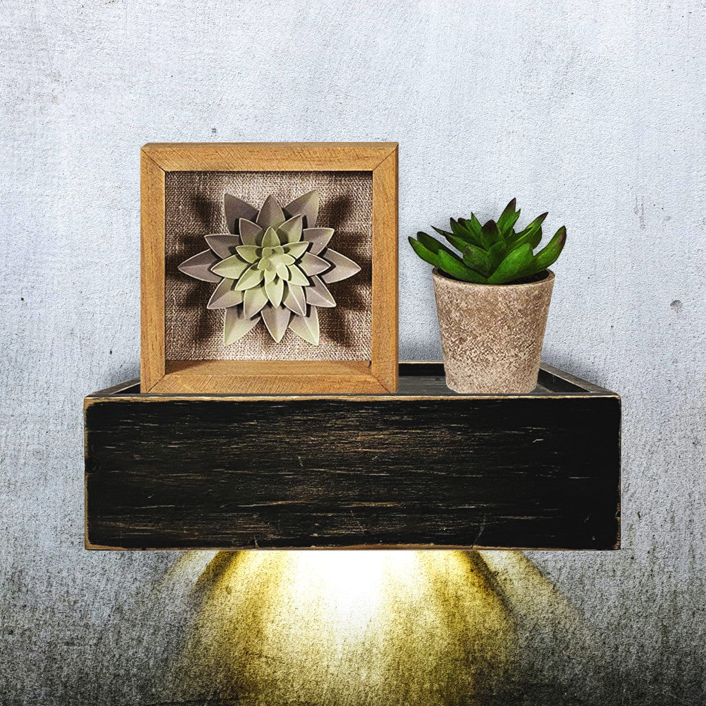 10" Black Distressed Wood Wall Mounted Floating Shelf With LED