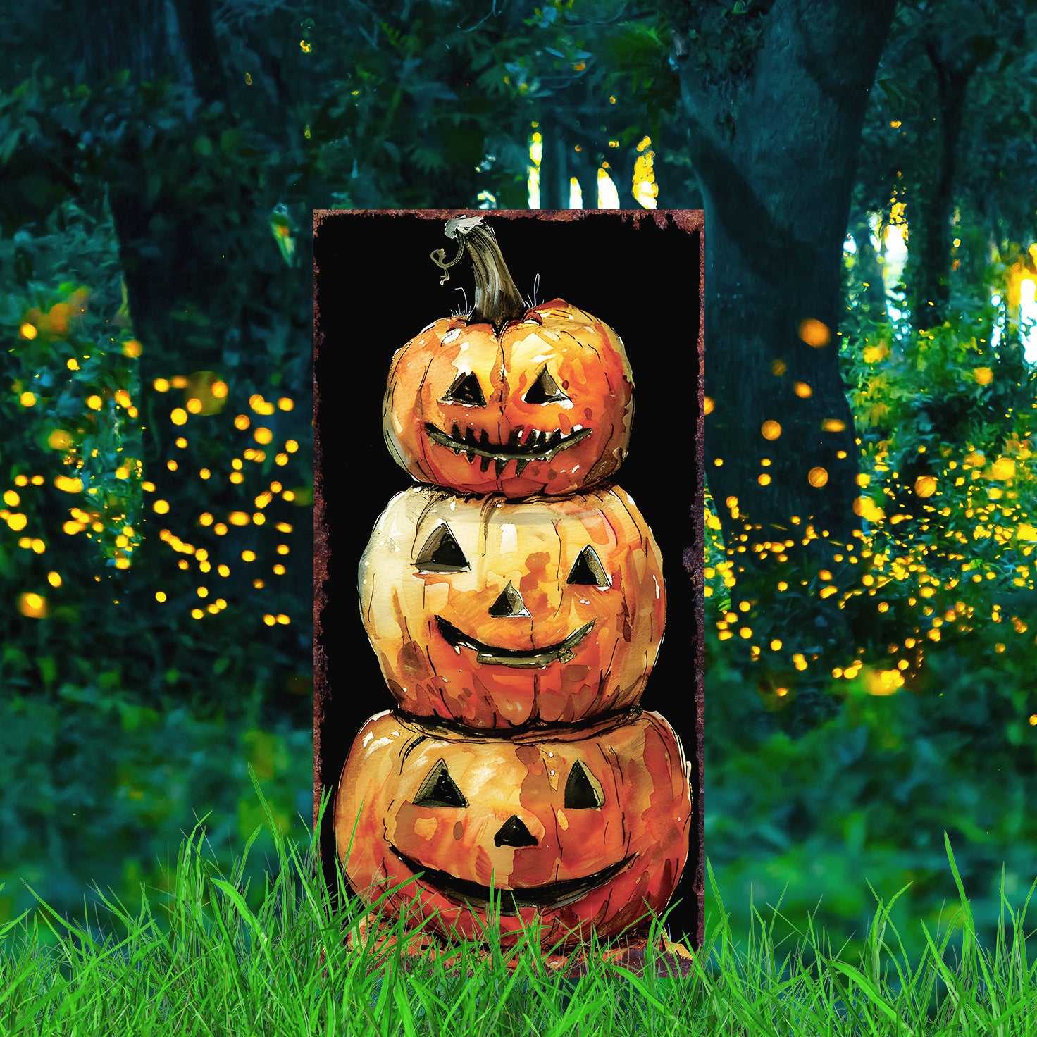 10" Black Orange And Yellow Solid Wood Halloween Ghost Garden Stake