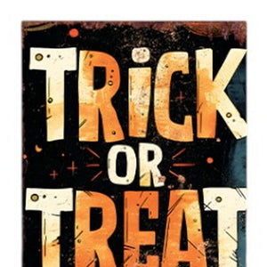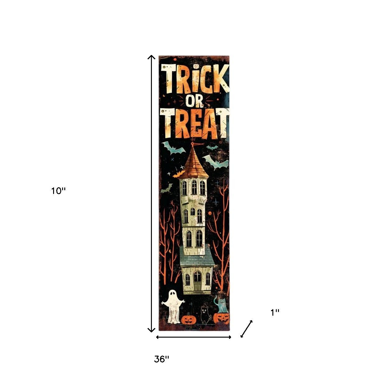 10" Black Orange Blue And Cream Solid Wood Trick or Treat Halloween Ghost Porch Sign