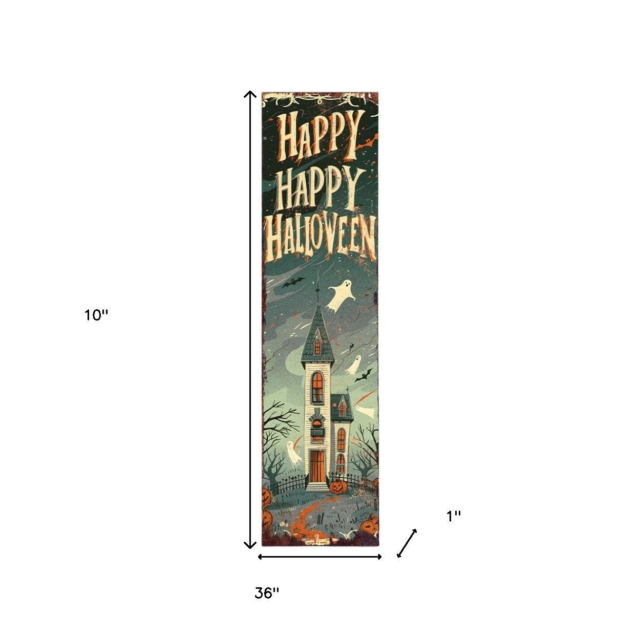 10" Black Orange Cream And Brown Solid Wood Happy Halloween Halloween Pumpkin Porch Sign