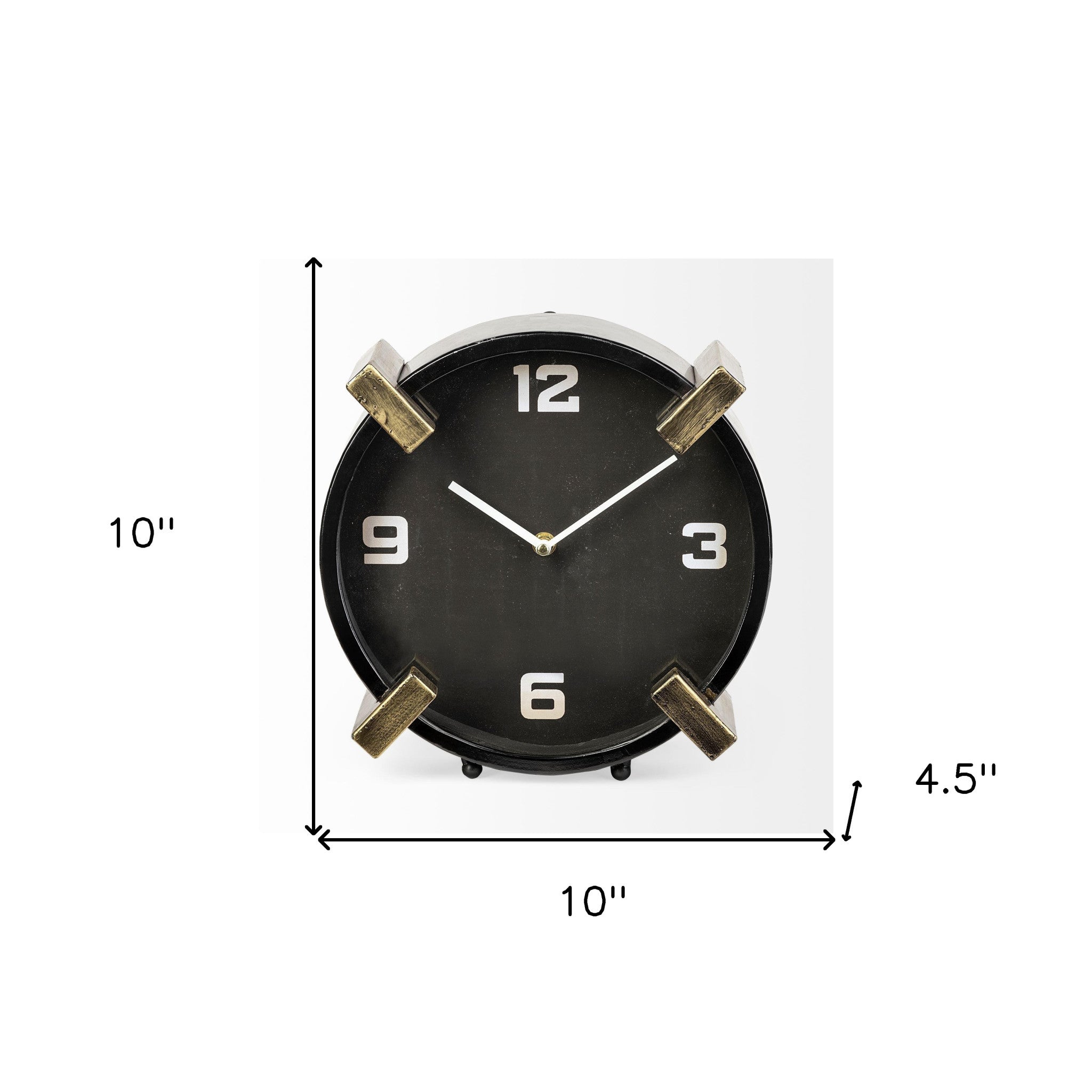 10" Black Stainless Steel Table Clock