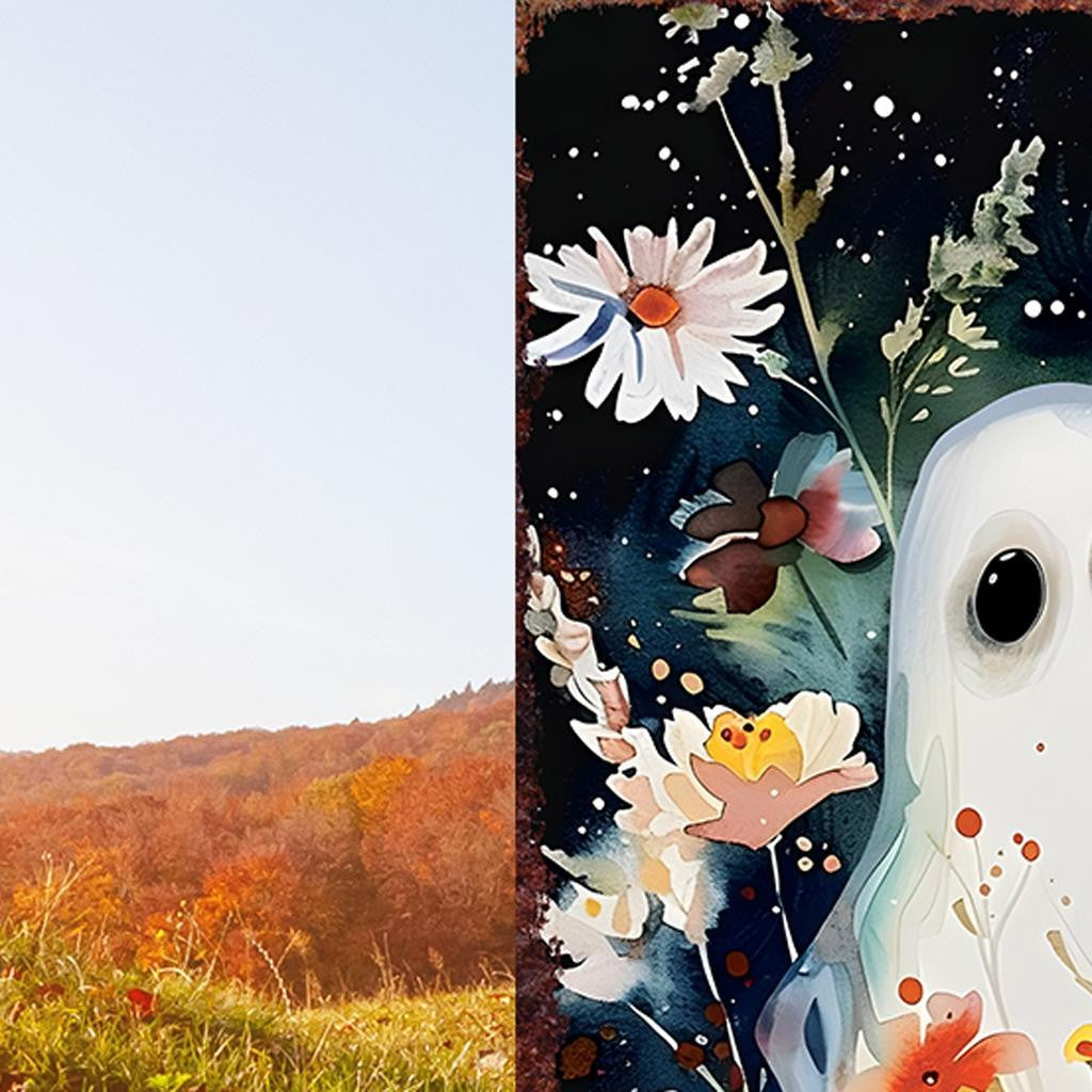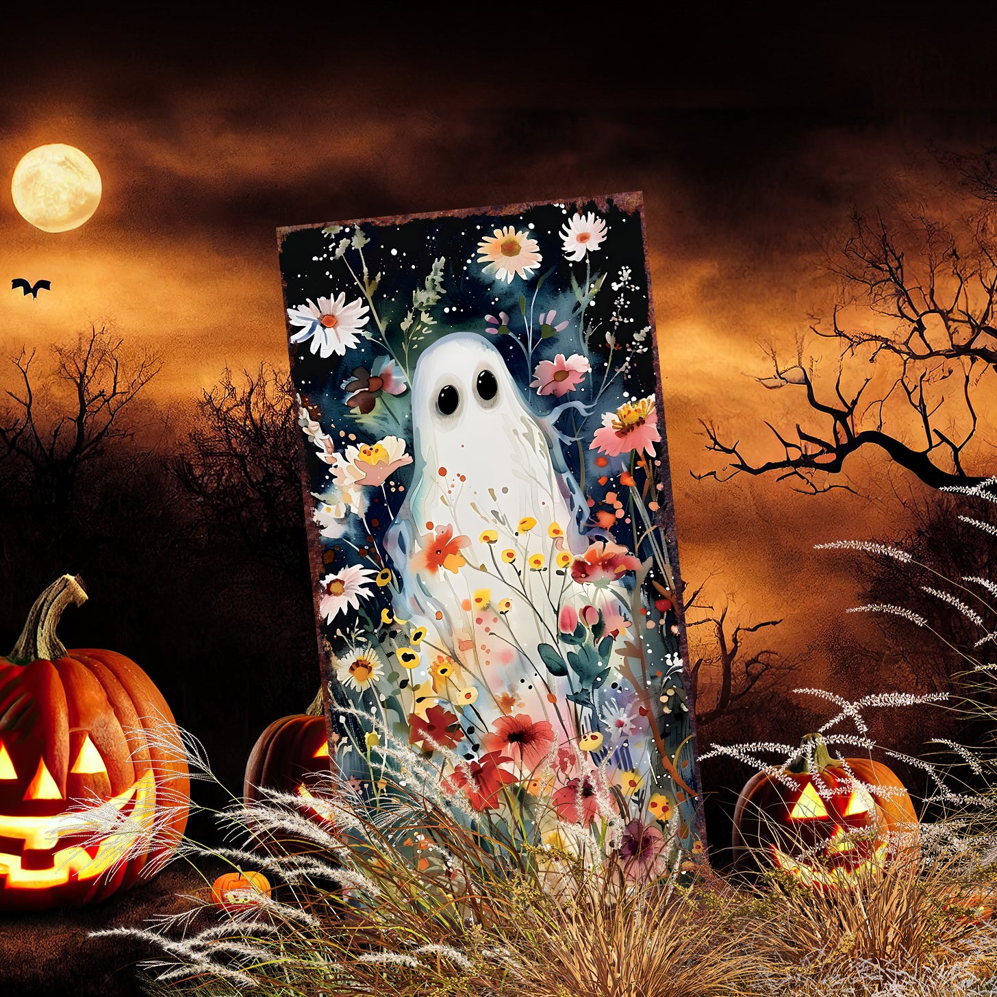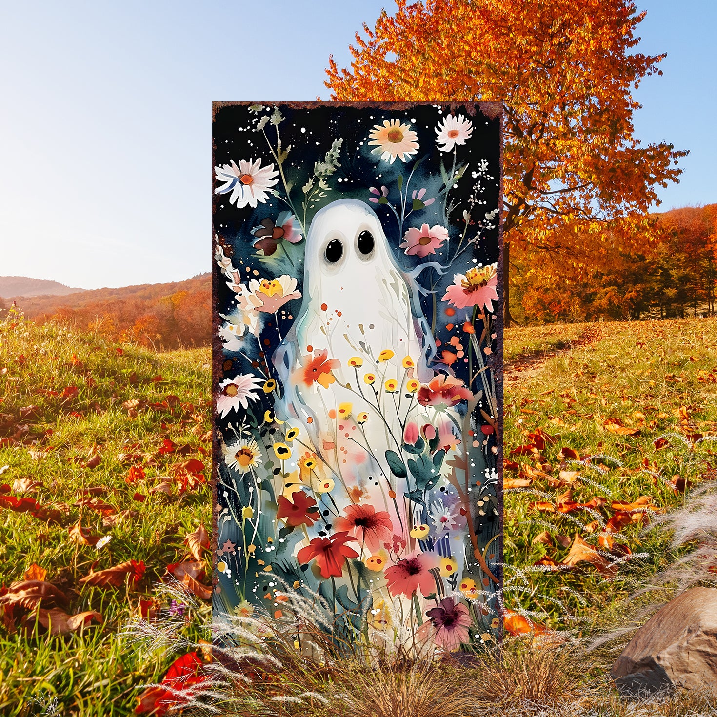 10" Black White And Yellow Solid Wood Daisies Halloween Ghost Garden Stake