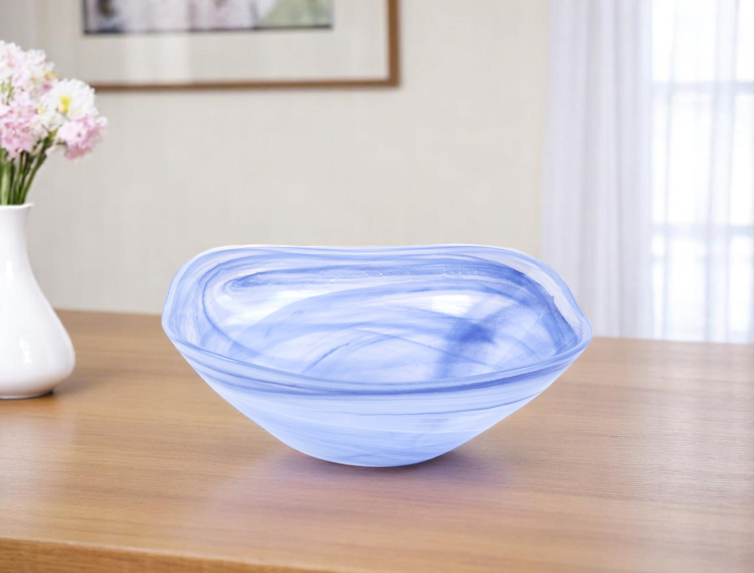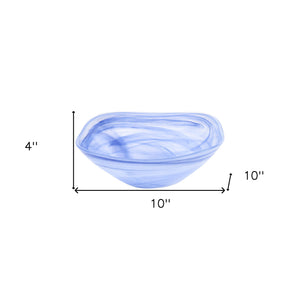 10" Blue And White Alabaster Glass Square Salad Bowl