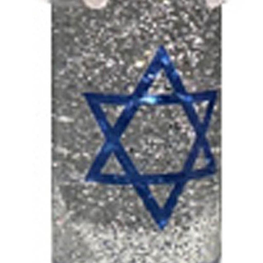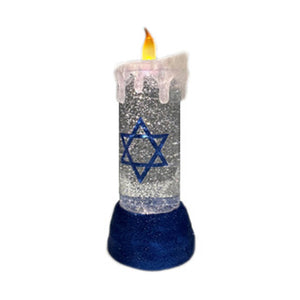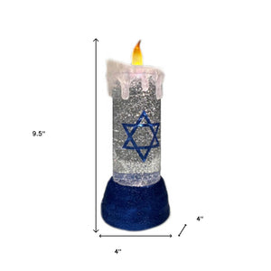 10" Blue And White Flameless Hanukkah Pillar Candle With Blue And White Holder
