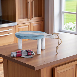 10" Blue And White Solid Wood Handmade Round Riser