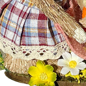 10" Blue Pink And Brown Straw Rabbit Easter Easter Bunny Figurine