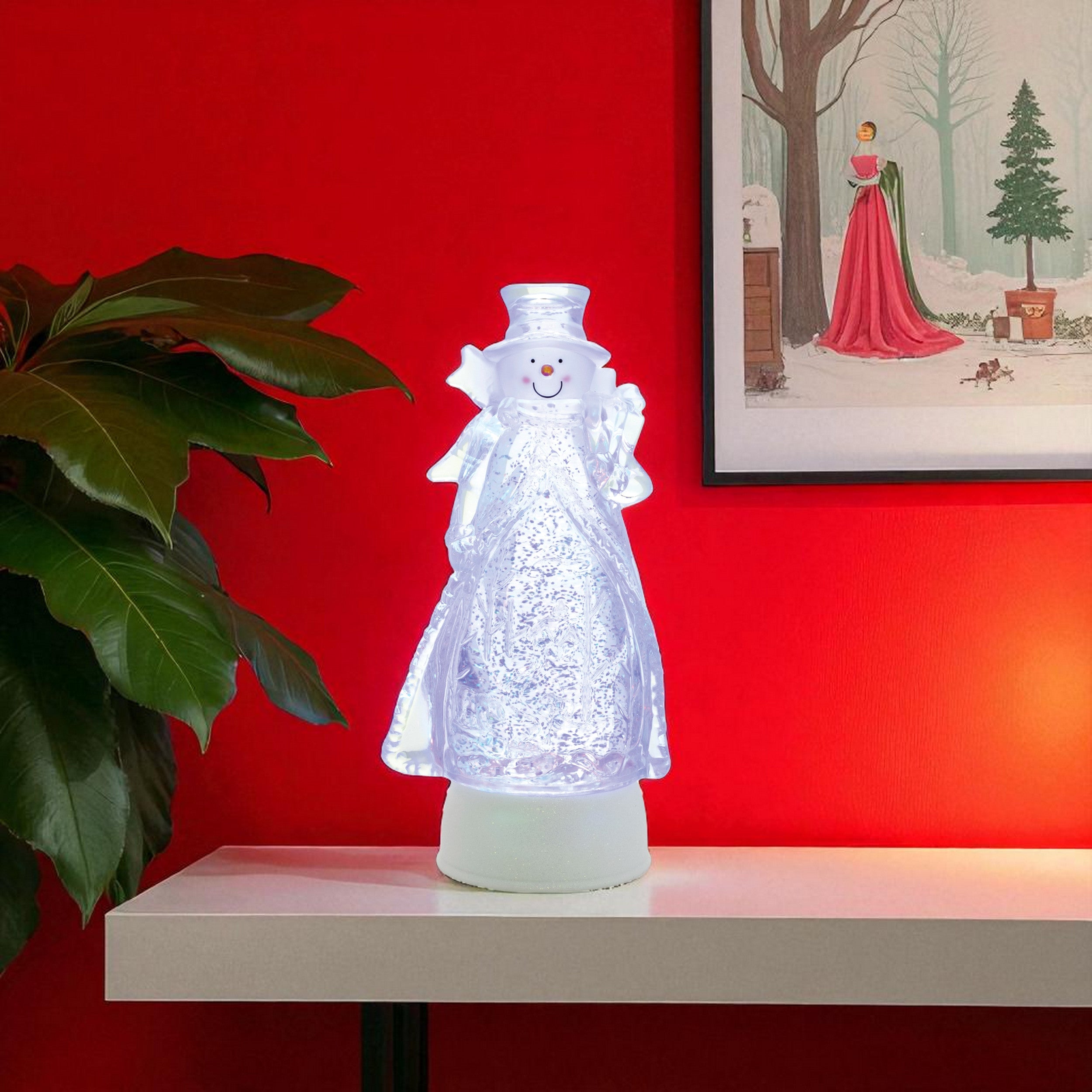 10" Clear Plastic Christmas Snowman Tabletop Sculpture with LED