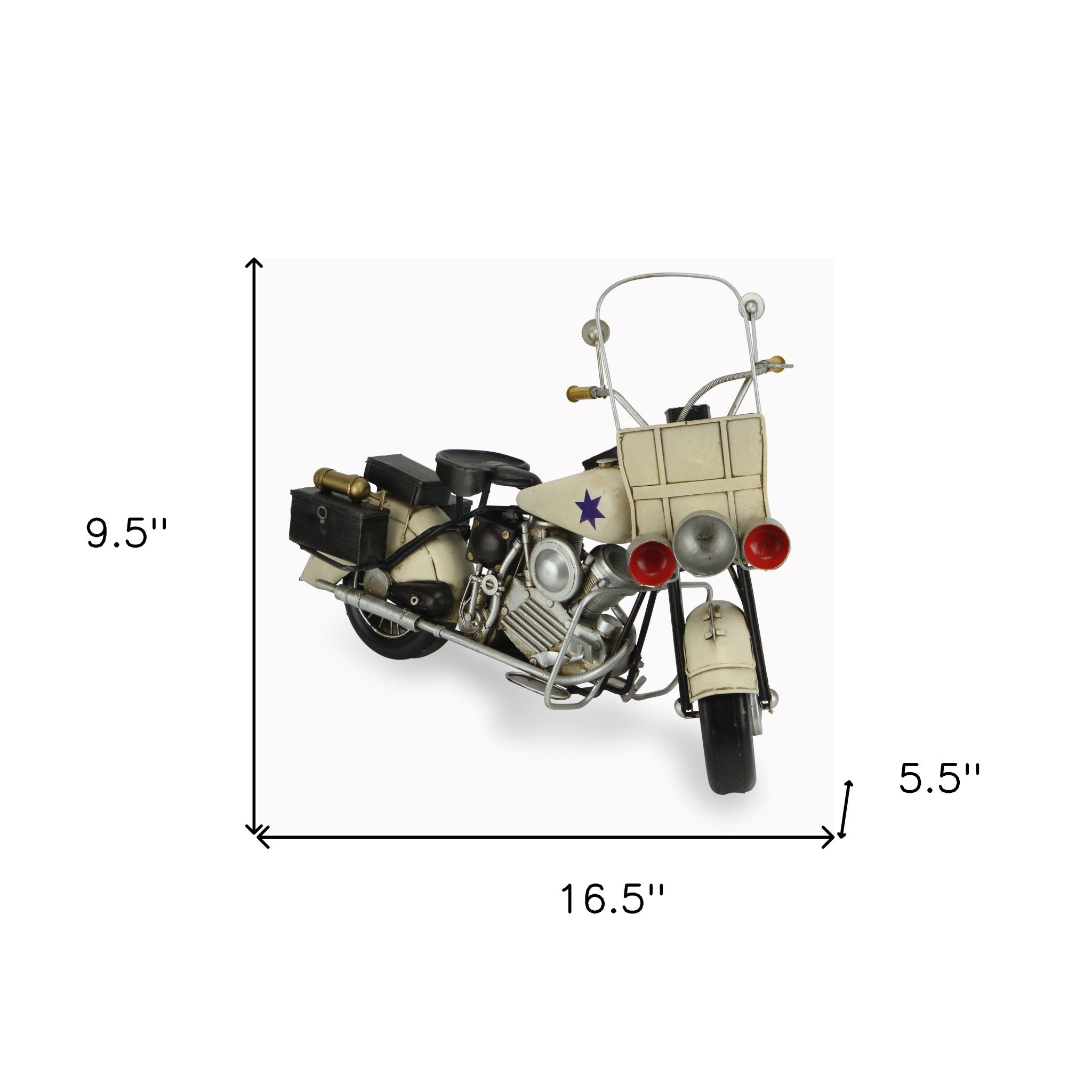 10" Cream Metal Hand Painted Early 1900's Police Motorcycle Model Model Motorcycle