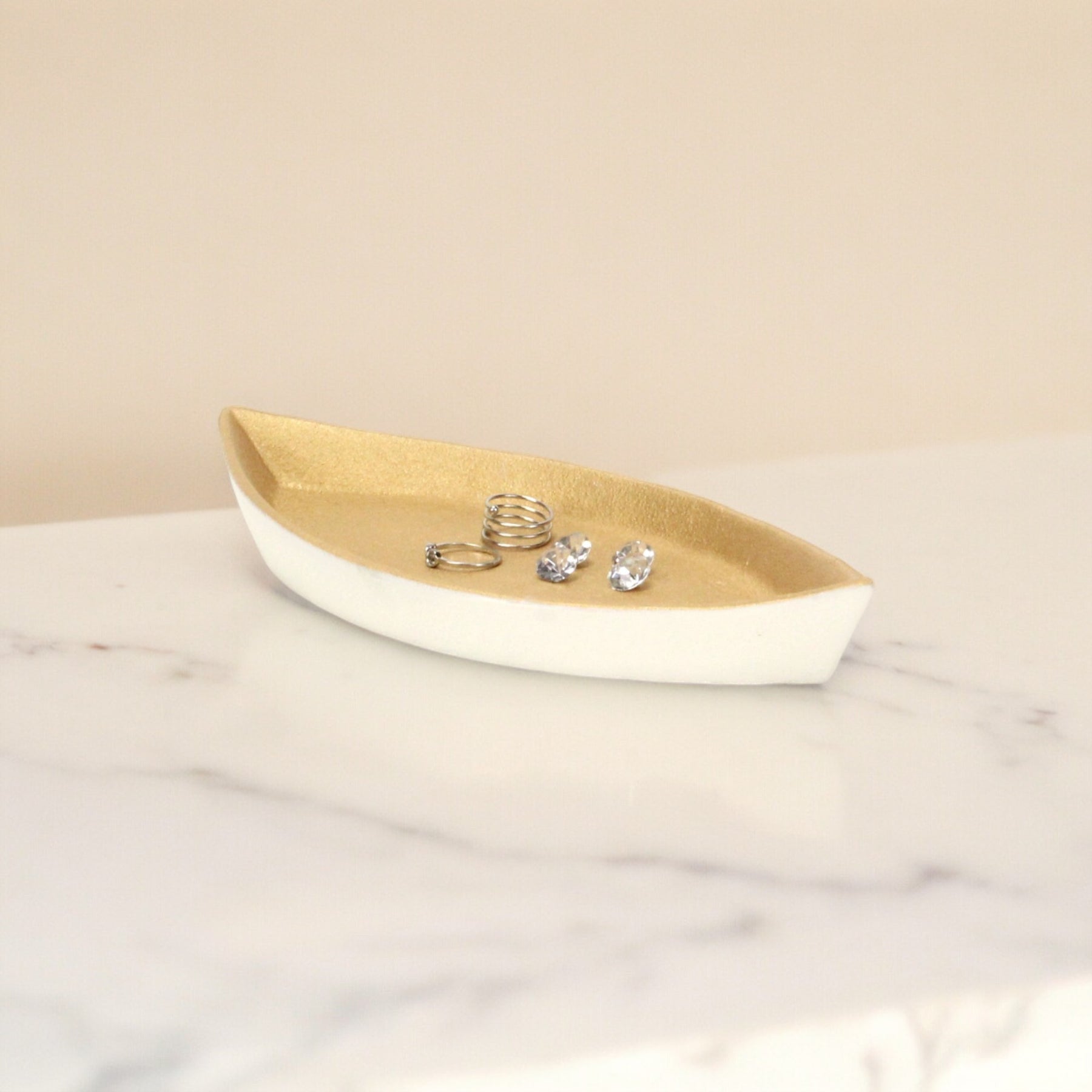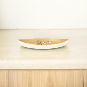 10" Gold And Off White Cast Iron Oval Boat Shaped Tray