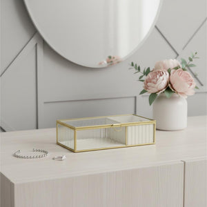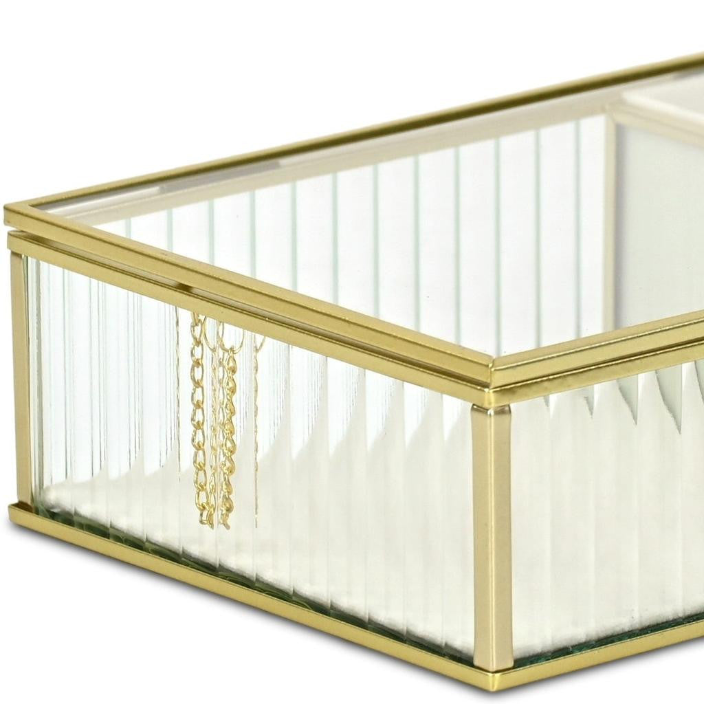 10" Gold Glass Two Section Jewelry Box With Metal Accents