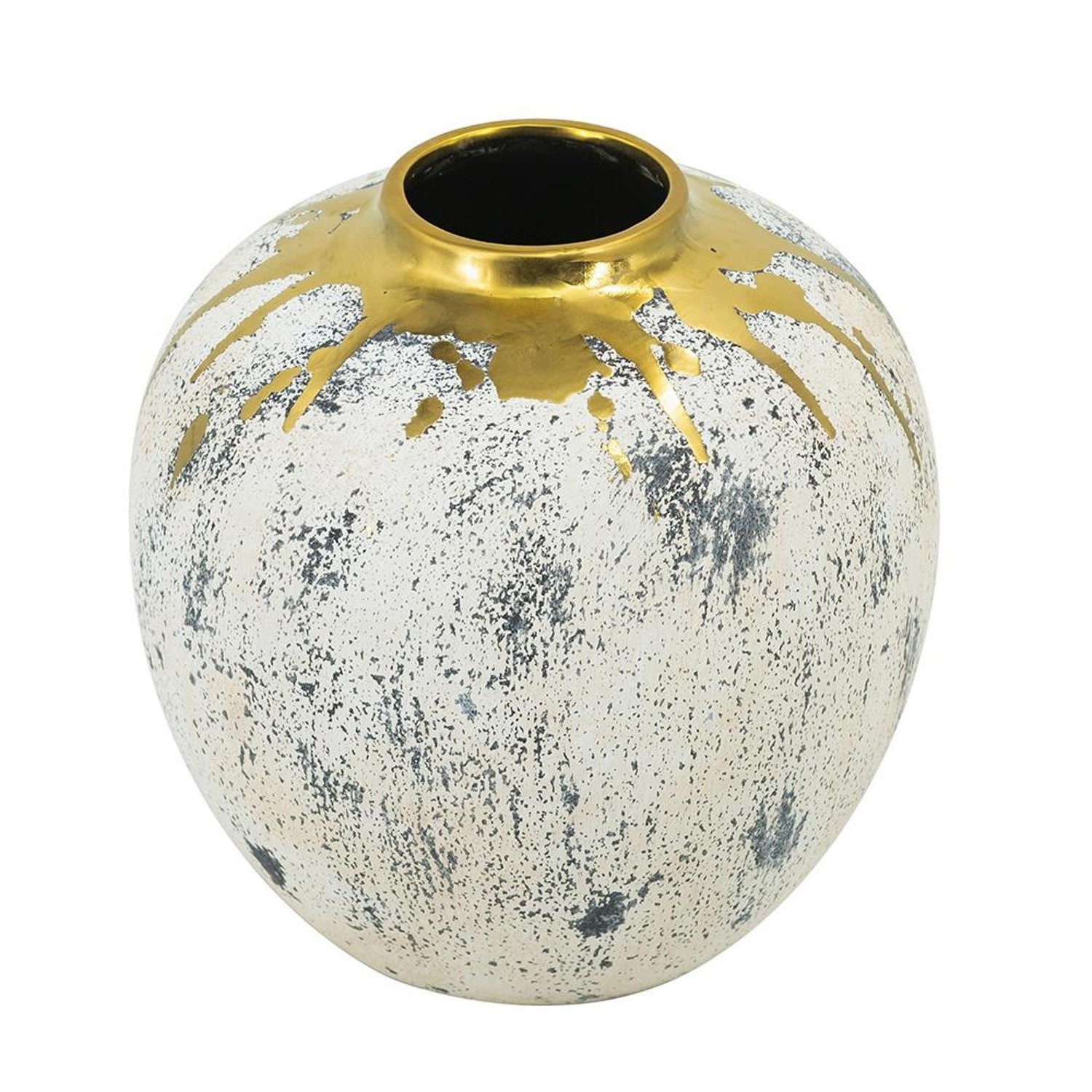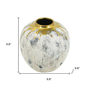 10" Gold Gray And Ivory Abstract Round Ceramic Table Vase
