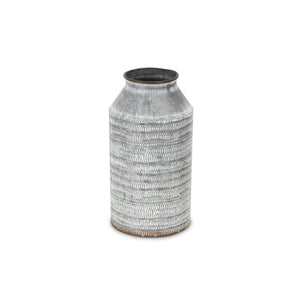 10" Gray Galvanized Metal Geometric Patterned Jug Vase