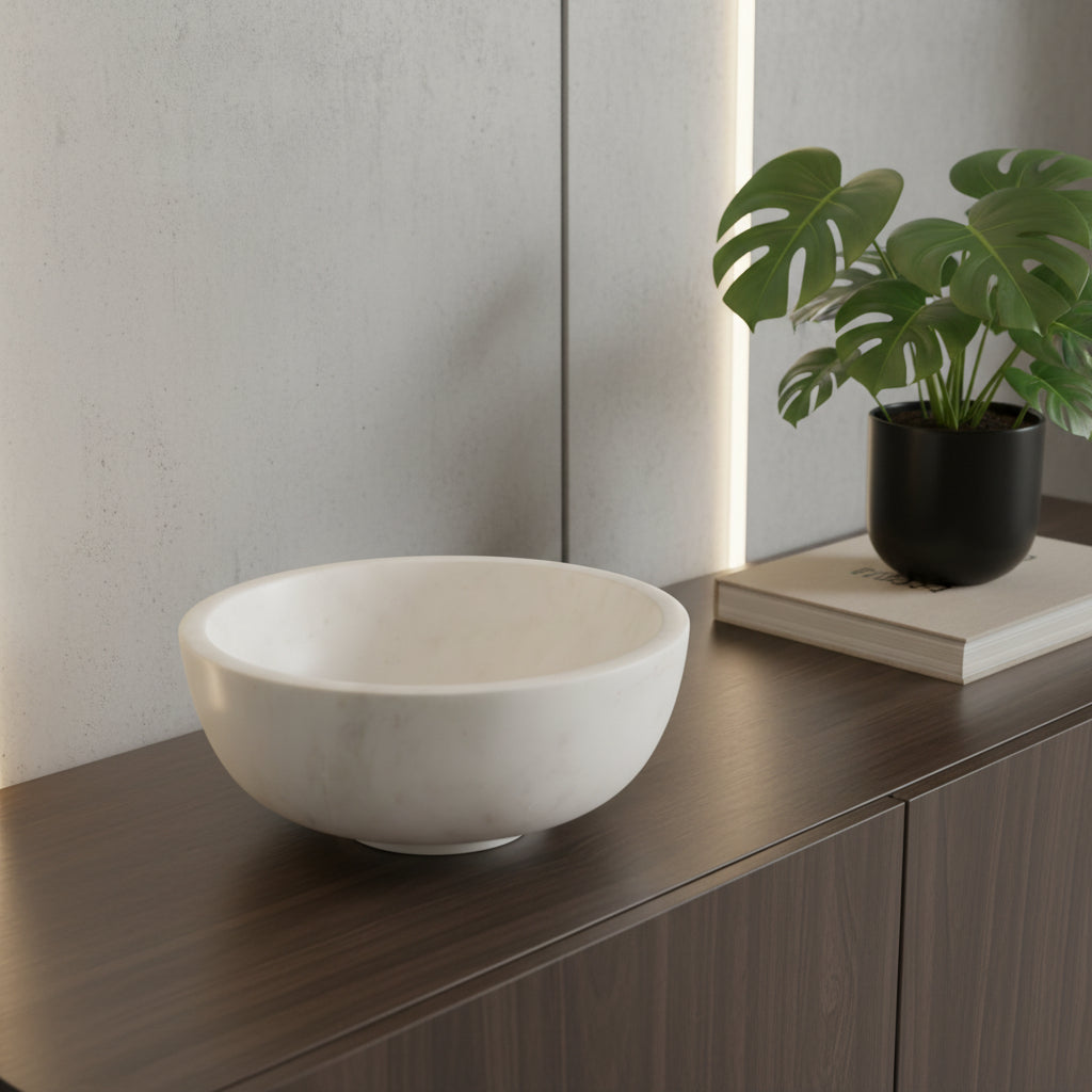 10" White Marble Round Centerpiece Bowl