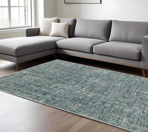 10' X 13' Dark Blue Light Blue Grey Ivory And Beige Abstract Power Loom Stain Resistant Area Rug