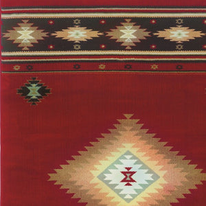 10' X 13' Red And Beige Ikat Pattern Area Rug