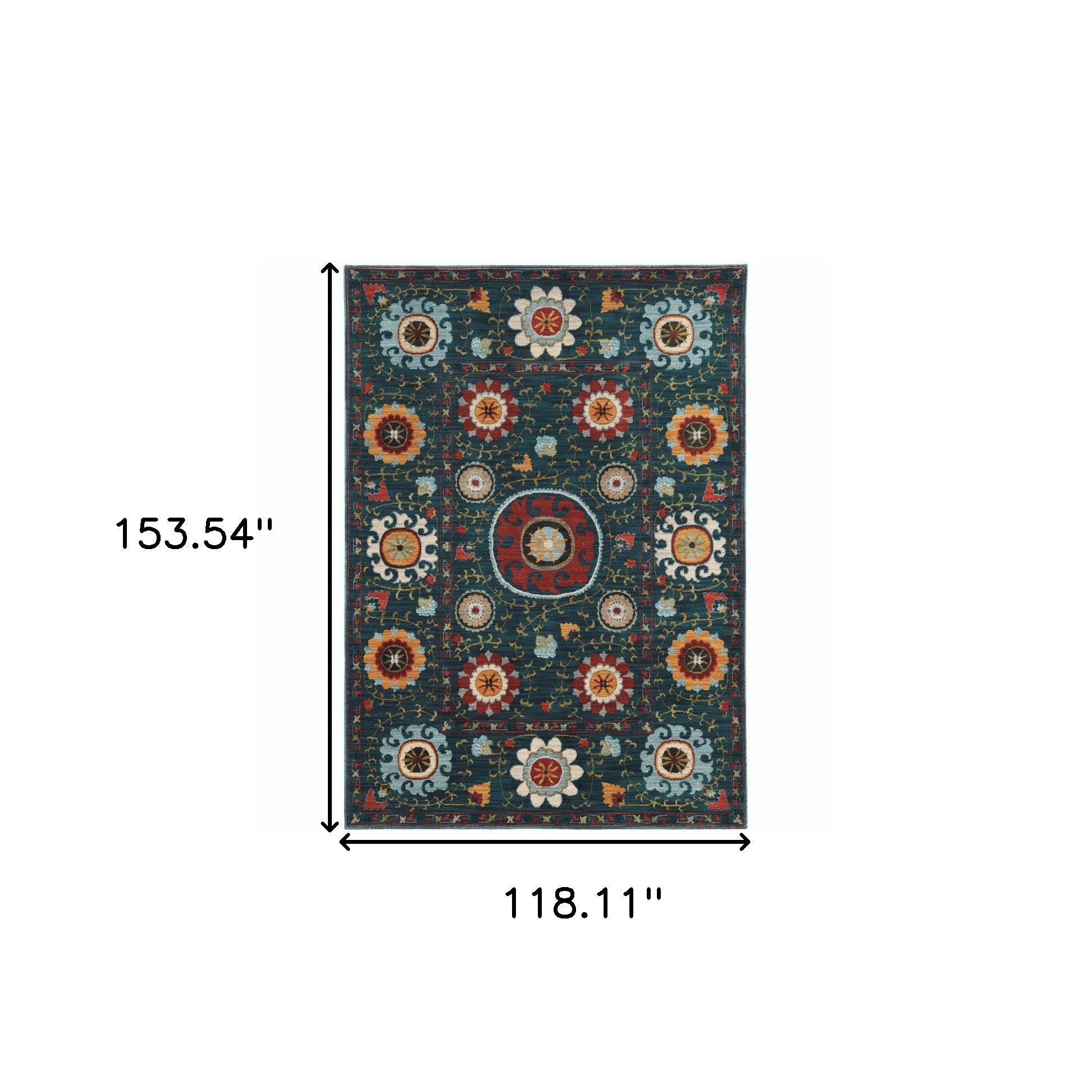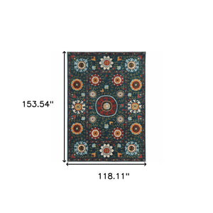 10' X 13' Teal Blue Rust Gold And Ivory Floral Power Loom Stain Resistant Area Rug