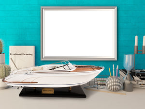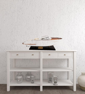 11" White Wood Yacht Model Sculpture