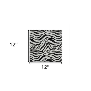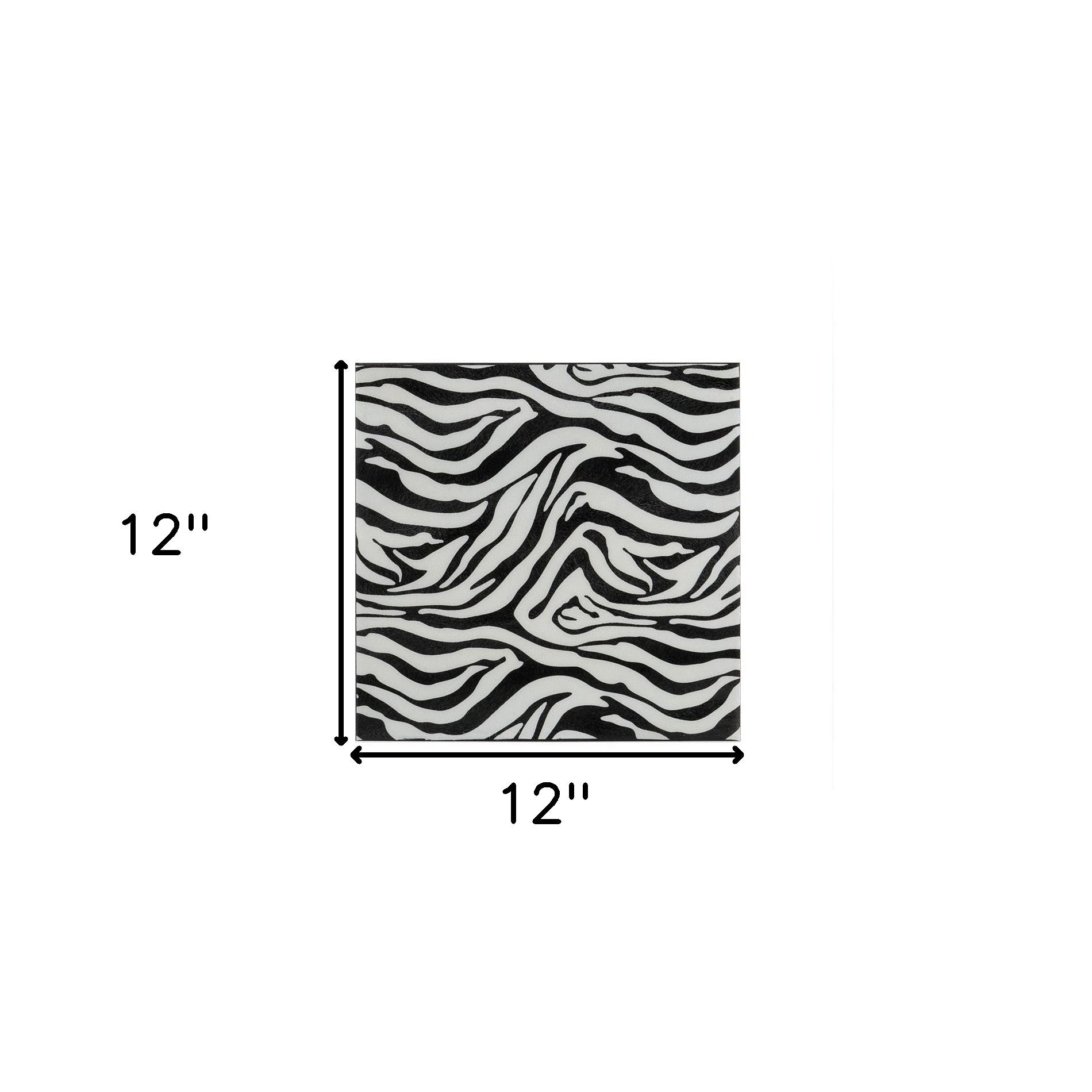 12" Black And White Zebra Iron And Resin Square Hanging Wall Tile