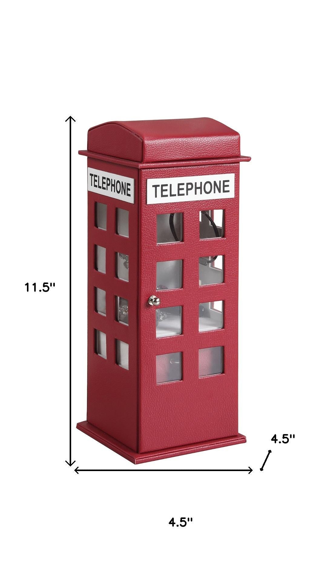 12" Burgundy And White Faux Leather Telephone Booth Jewelry Box