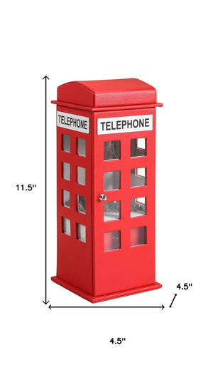 12" Red And White Faux Leather Telephone Booth Jewelry Box