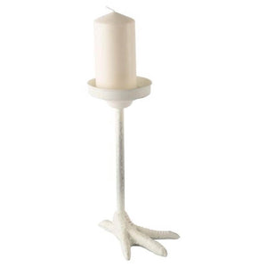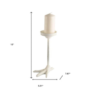 12" White Cast Iron Tabletop Pillar Candle Holder