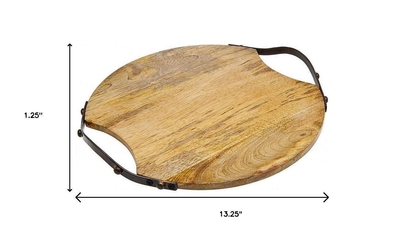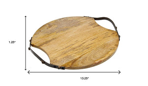 13" Natural Brown Round Wood and Metal Tray