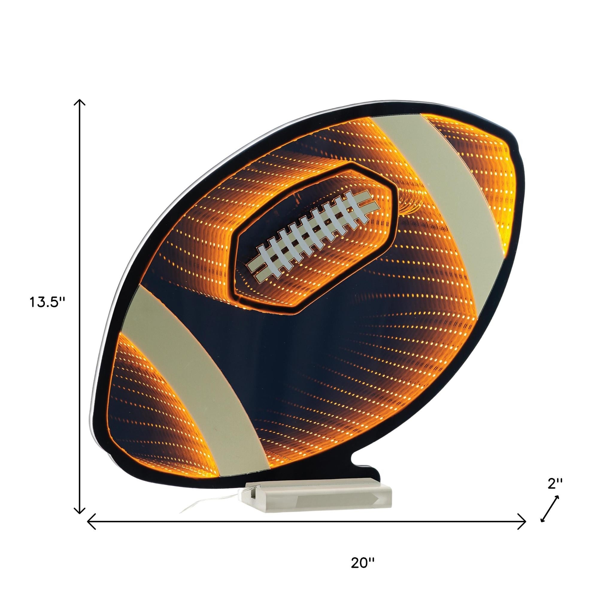 14" Black Orange And White Acrylic Football Tabletop Sign with LED