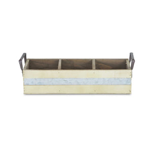 15" Antiqued White Solid Wood And Metal Box