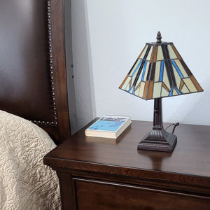 15" Dark Brown Metal Candlestick Table Lamp With Orange and Ivory Empire Shade