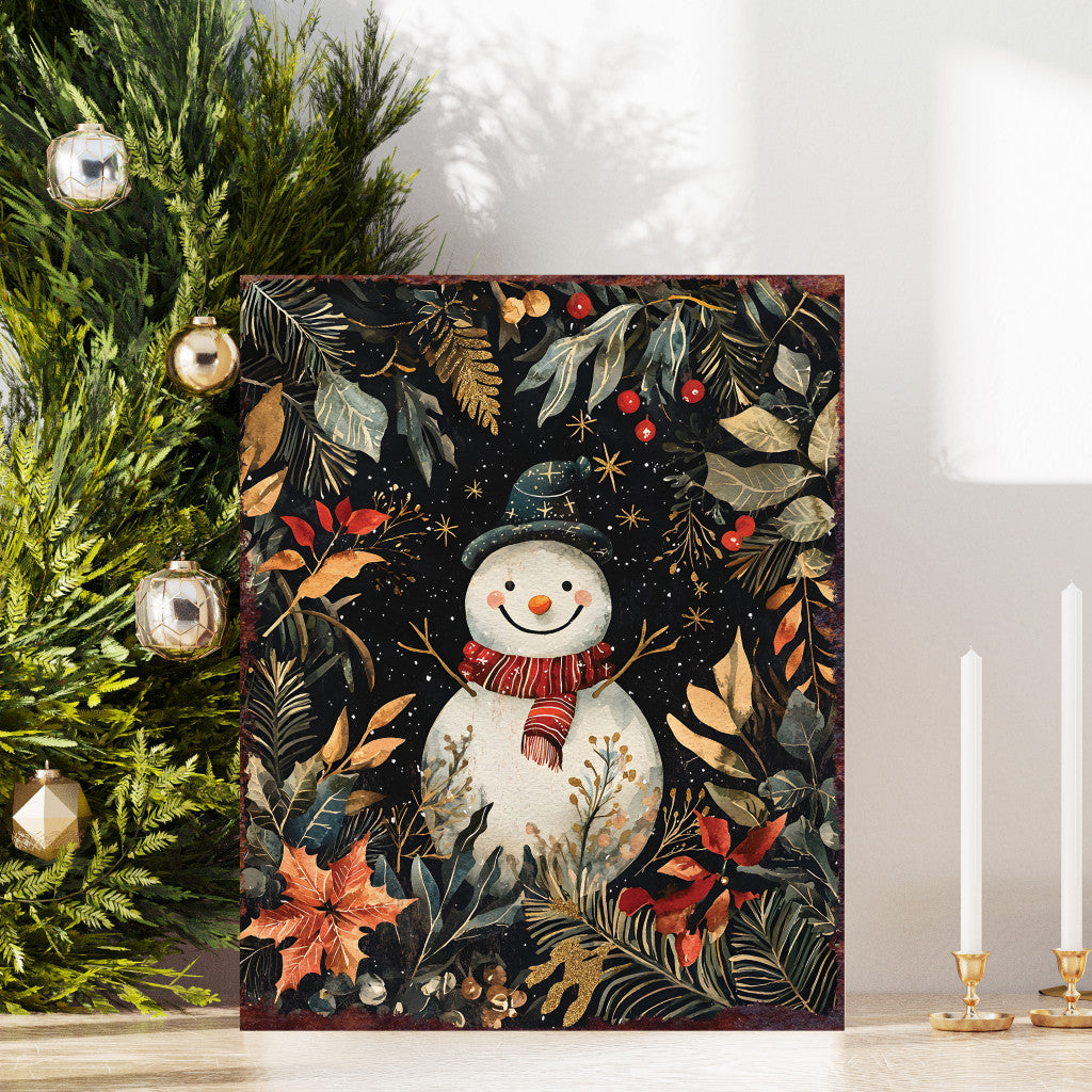 15" Red White And Green Wood Flowers Christmas Snowman Tabletop Sign