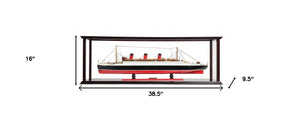 16" Black and Red Solid Wood Hand Painted RMS Queen Mary Medium Display Case Model Boat