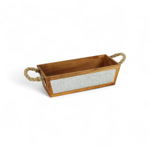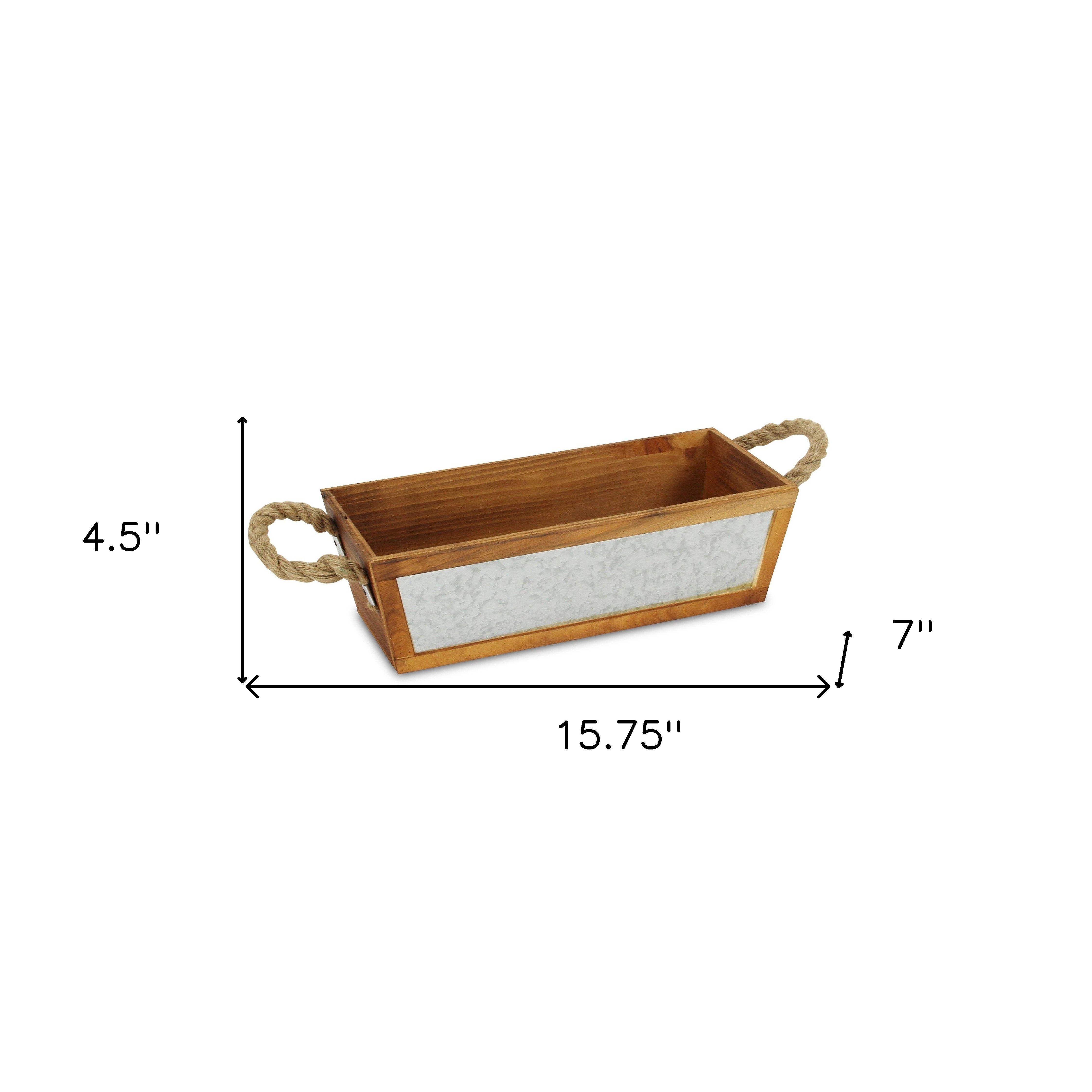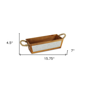 16" Brown Solid Wood And Metal Crate