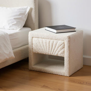 16" Ivory Wood Woven Texture One Drawer Nightstand