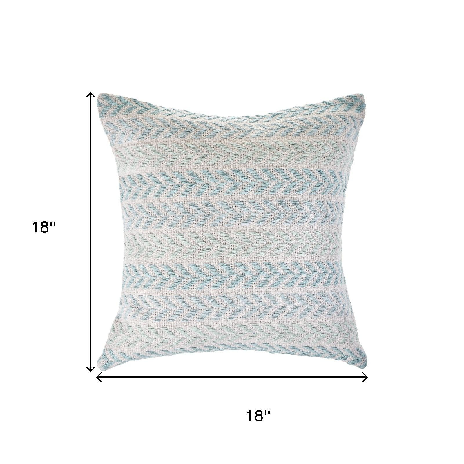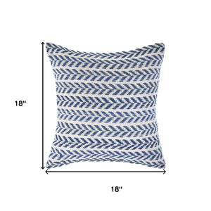 18" Blue And White Beach Chevron Cotton Throw Pillow Cover