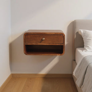 18" Brown Solid Wood One Drawer Floating Nightstand