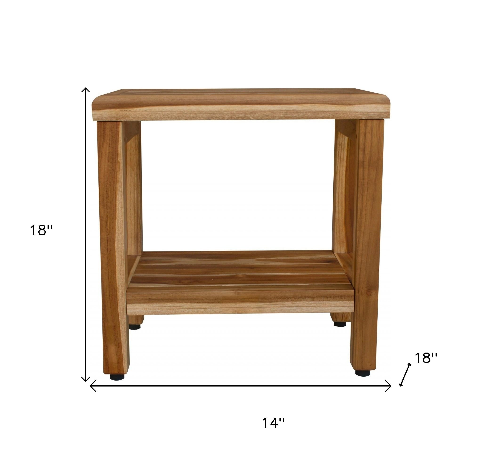 18" Contemporary Teak Shower Stool Or Bench With Shelf In Natural Finish