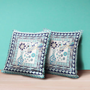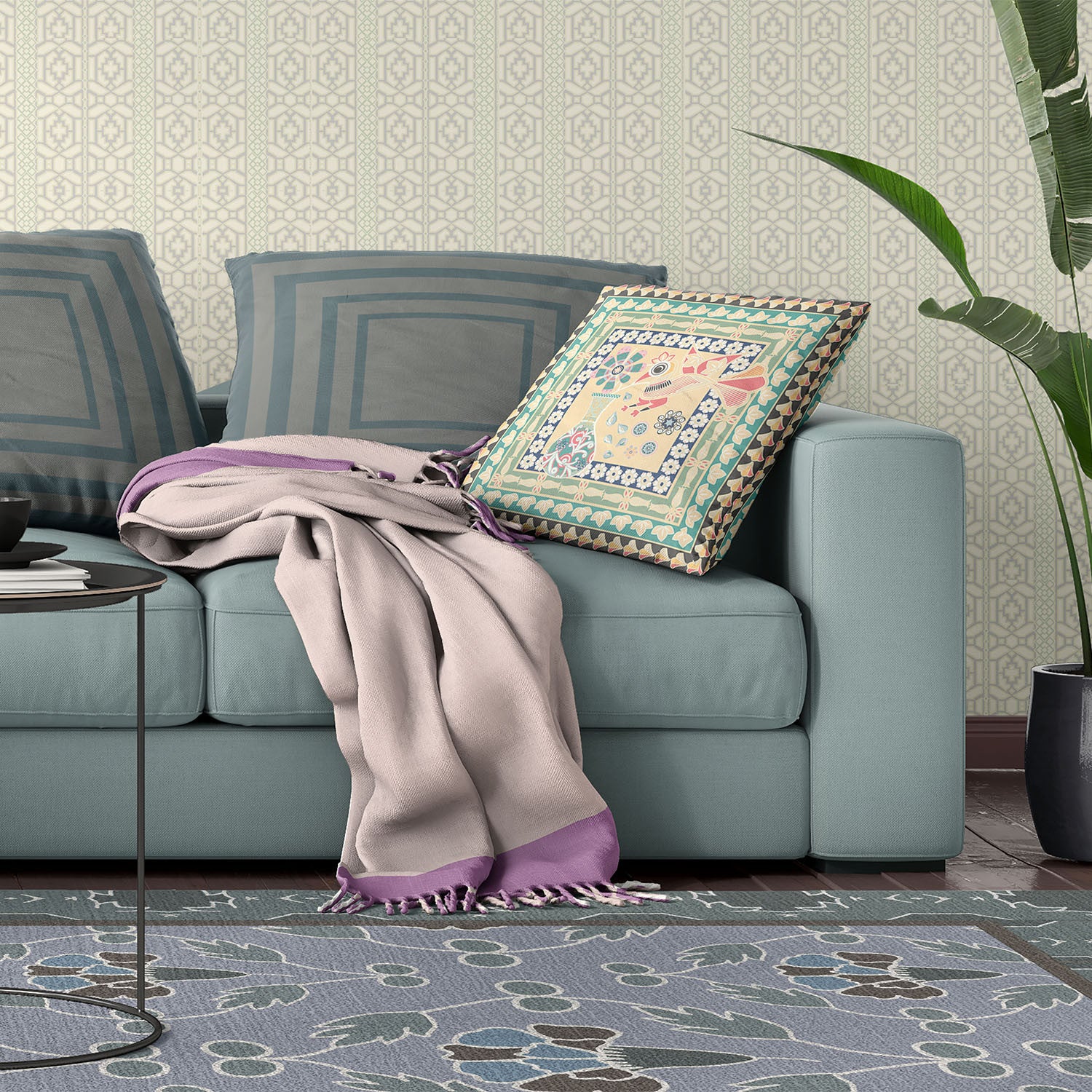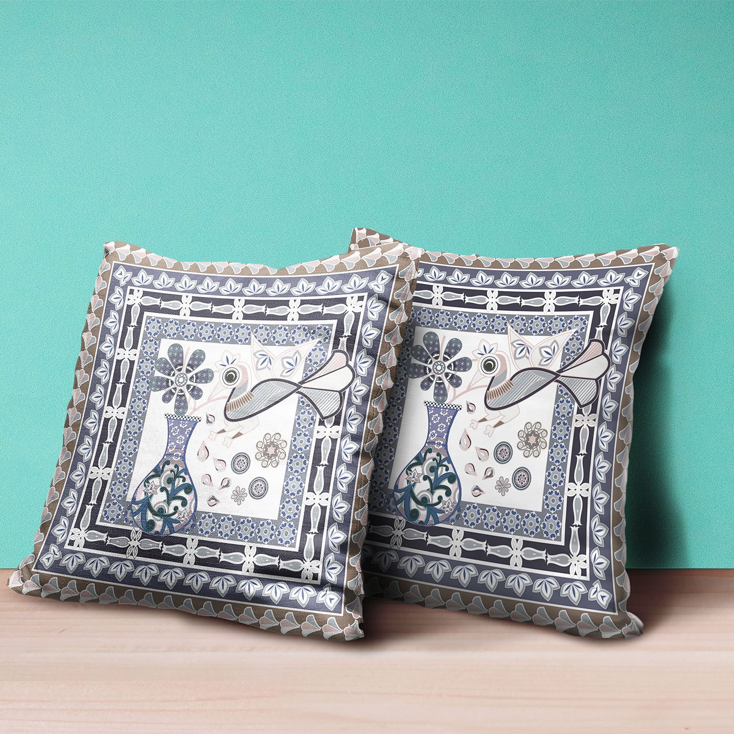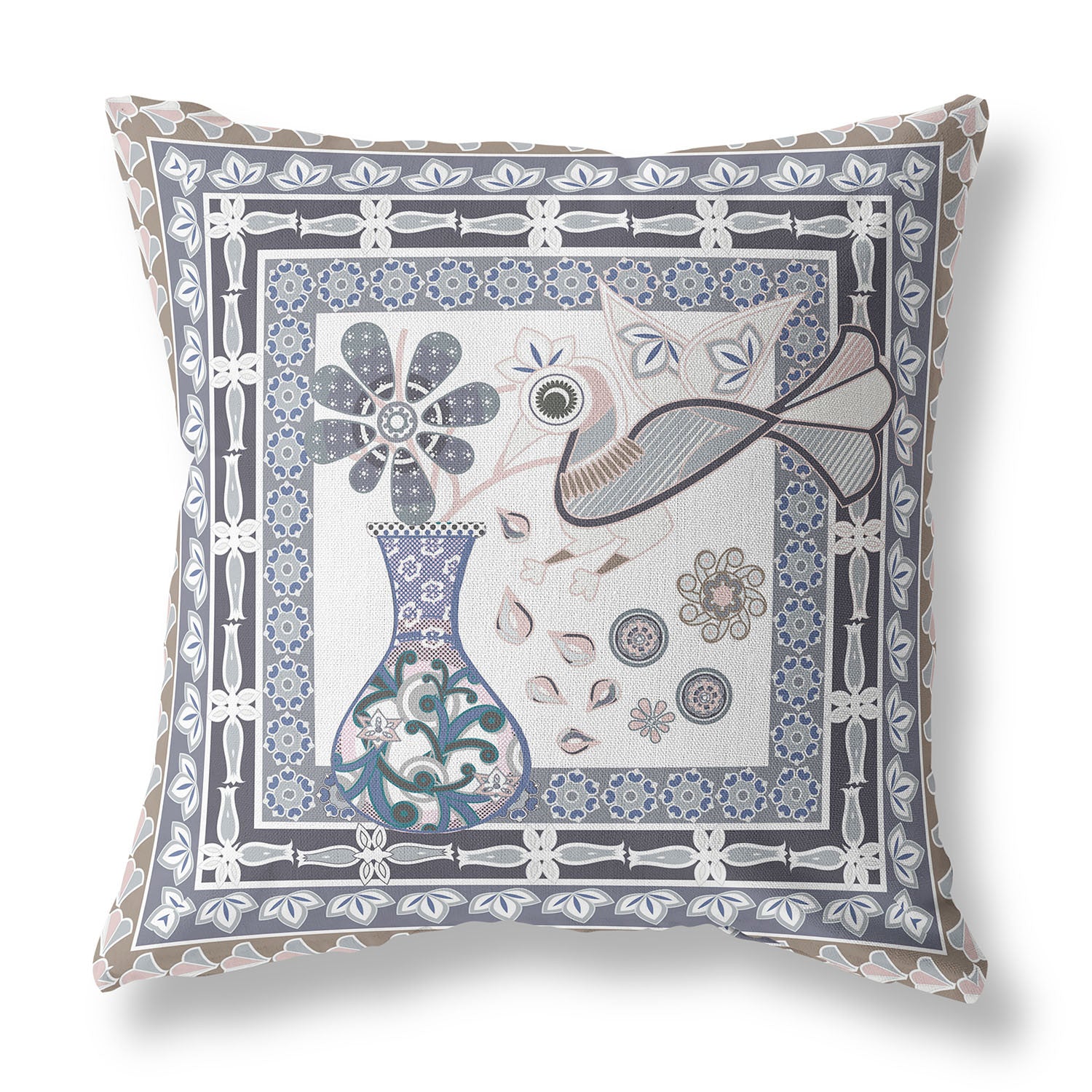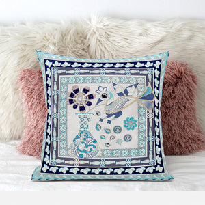 18" x 18" Beige Peacock Blown Seam Floral Indoor Outdoor Throw Pillow
