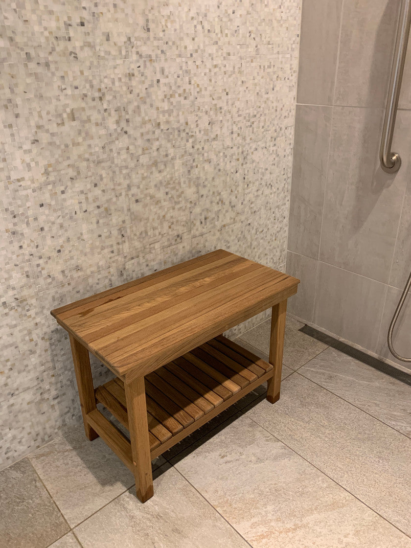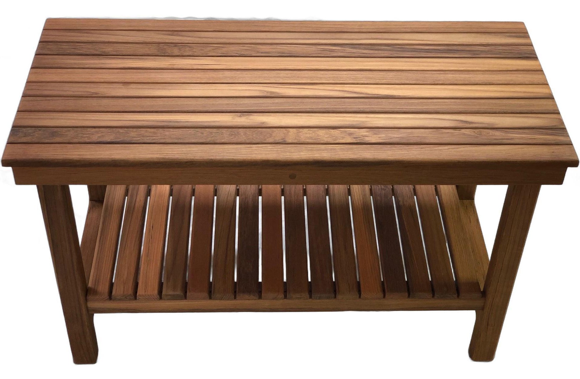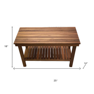 18" X 25" Brown Teak Rectangular Shower Bench With Shelf