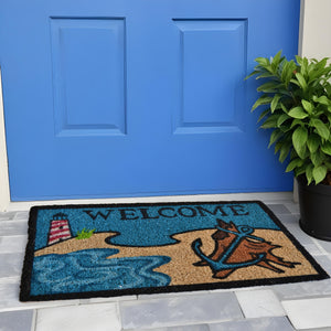18" X 30" Blue and Black Coir Anchor Welcome Outdoor Summer Door Mat