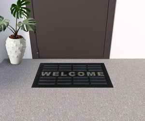 18" X 30" Gray Synthetic Fiber Abstract Outdoor Door Mat