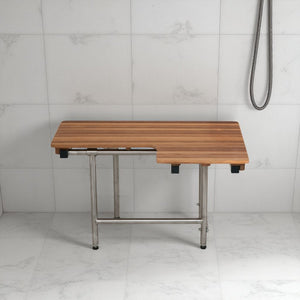 18" X 32" Brown Teak Rectangular Shower Bench With Legs