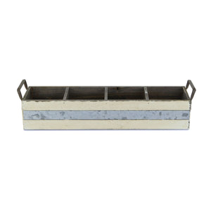 19" Antiqued White Solid Wood And Metal Box
