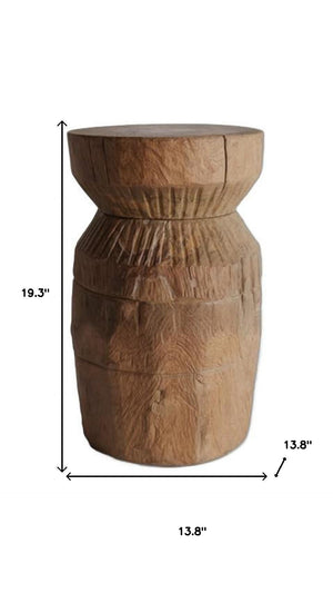 19" Natural Distressed Reclaimed Wood Round Drum End Table
