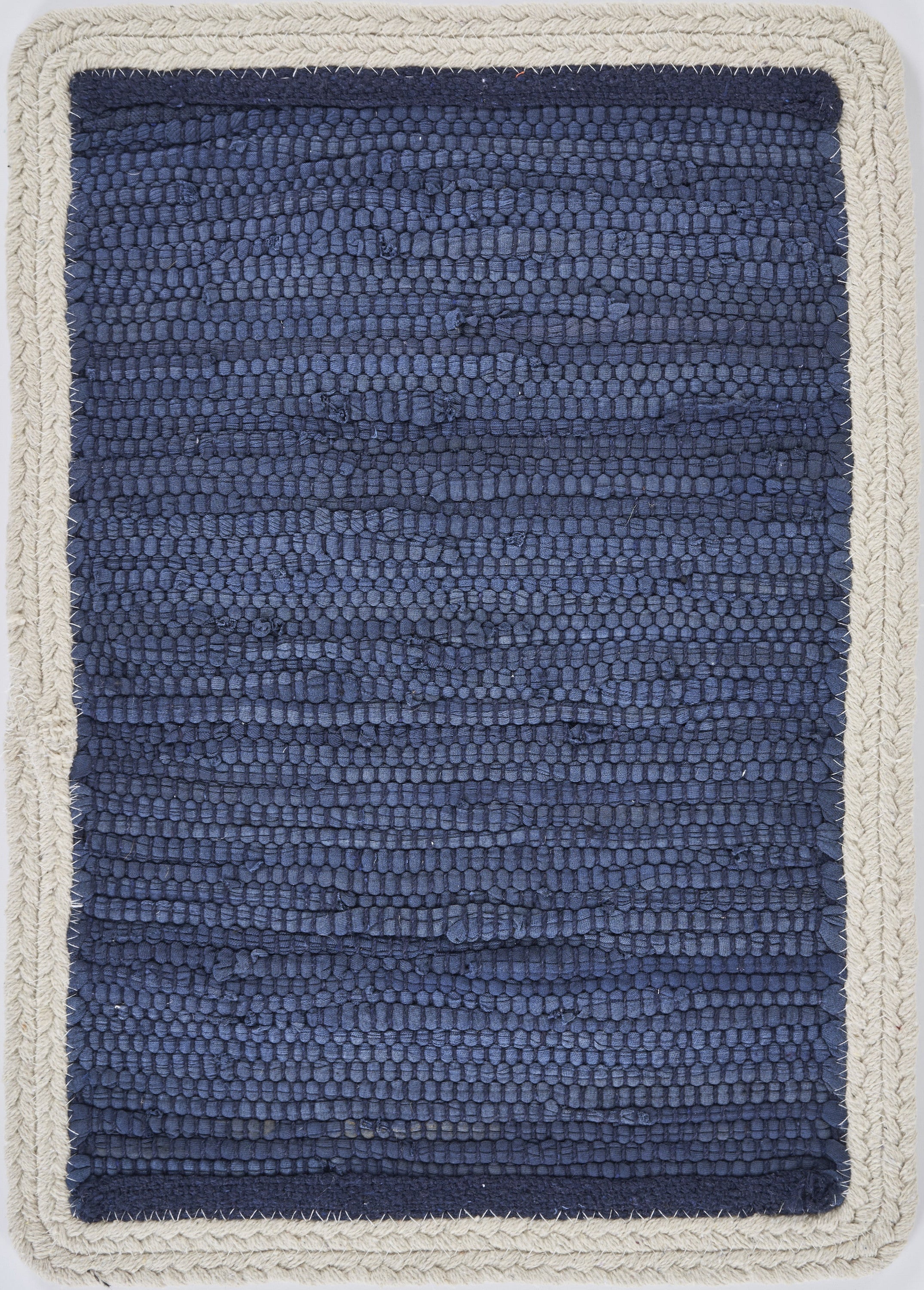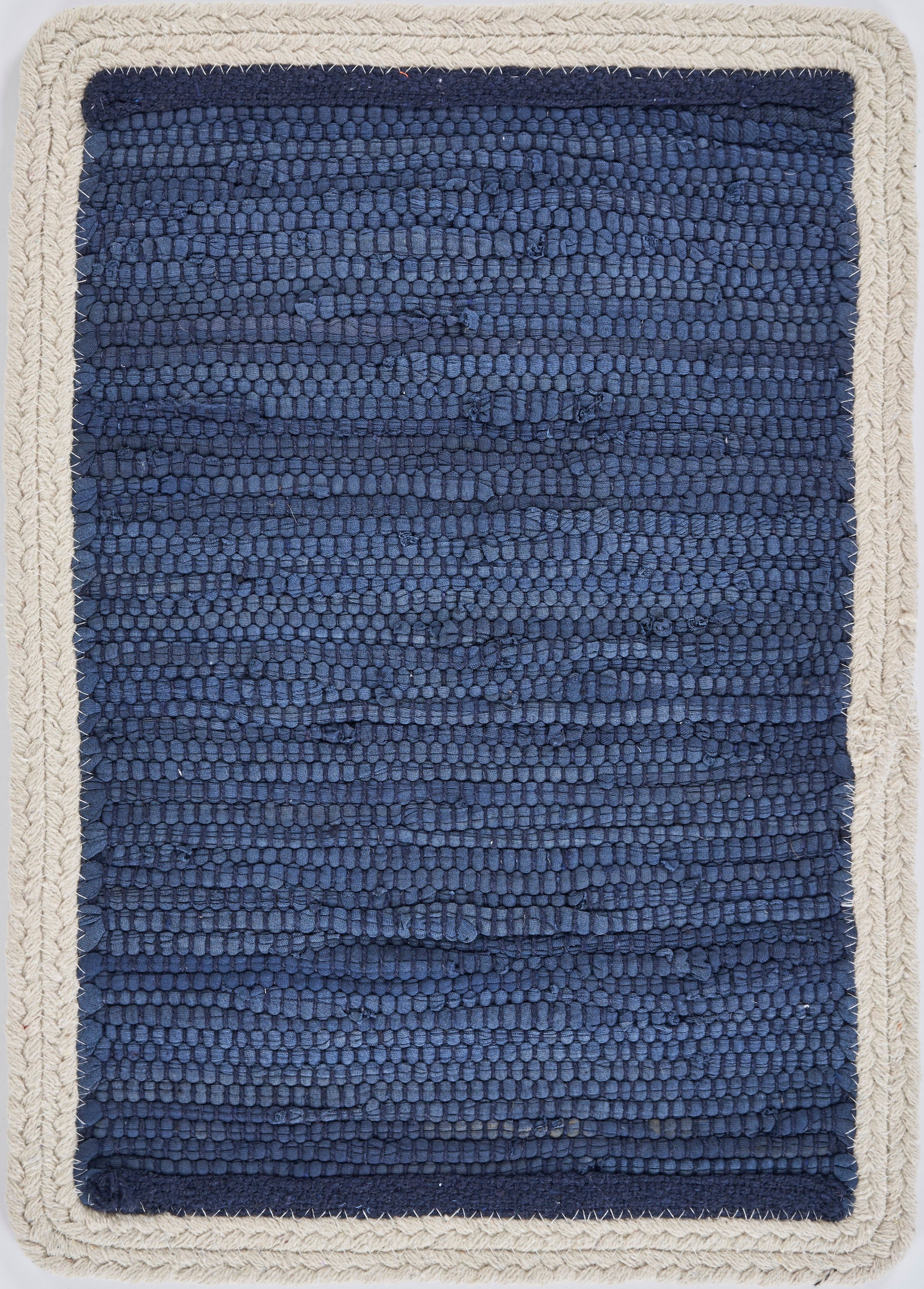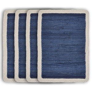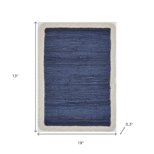 19" Set of Four Navy Blue And Natural Solid With Border Cotton Placemats
