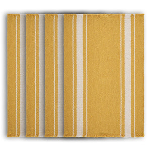 19" Set of Four Yellow And White Striped Cotton Placemats